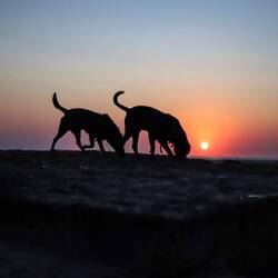 Nach einer kurzen Siesta packen wir dann unsere Rucksäcke, vor allem mit Wasser für sie Jungs, und Spazieren durch den Ort um den Eingang zum Hundestrand zu finden. Wenn man hier unerlaubt mit dem Hund am Falschen Strand landet kostet das zwischen 300 und 1000€ das wollen wir lieber nicht riskieren. Zum glück hat uns die Seniorita vom Campingplatz erklärt an welchen Strandabschnitt wir dürfen und nach einem Kurzen Spaziergang finden wir ihn auch. Wir trauen unseren Augen kaum. Alle Hunde laufen frei herum und das ohne Stress zwischeneinander oder Chaos. Die Menschen liegen entspannt oder spielen mit den Hunden oder baden mit ihnen. Die Hunde spielen miteinander es ist schön dir Kommunikation zwischen ihnen zu beobachten und noch viel schöner zu sehen wie toll es funktioniert wenn sie nicht so eingeschränkt und dadurch sozial gestört sind wie in Deutschland. Spencer kann sein Glück kaum fassen als wir ihn von der Leine machen und weiß gar nicht welchem Hund er zuerst Hallo sagen möchte. Baloo und interessiert aber zunächst noch Skeptisch. Seine schlechten Erfahrungen haben ihn doch geprägt. Doch je länger wir dort sind umso entspannter wird auch er und am Ende genießen wir alle vier diesen Abend am Strand sehr. Es ist einfach schön das sie Hund sein dürfen und es ist eine Super Gelegenheit zum Trainieren auch mal aus dem Spiel heraus ab zu rufen oder auch mal ruhe zu wahren wenn gerade andere Hunde spielen. Wirklich perfekt. Zurück am Bus sind die Jungs fix und Fertig und wir genießen entspannt den Abend und den herrlichen Blick um uns herum.Read more