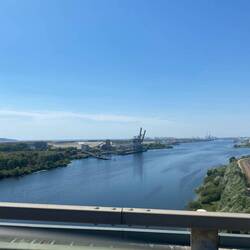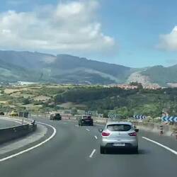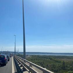 Weiter geht es jetzt über Autobahn und Mautstraße und was soll ich euch sagen die Strecke ist sogar schöner. Über coole Bücken mit teilweiser krassen Steigung und um 6.50€ Maut ärmer kommen wir am nächsten Ziel an... eine Hafenstadt. Super viel los. Camping direkt im Zentrum und nun ja was soll ich euch sagen... komplett voll war ja klar. Alle Parkplätze auf denen man über Nacht stehen könnte sind voll oder lit Höhenbegrenzung ... wir stellen uns erneut in Schatten um ab zu kühlen... dann geht es weiter. Nicht weit weg ist der Nächste Campingplatz. Dort angekommen steht wieder das Schild draußen dass er voll ist. Es ist aber ein verdammt großer Campingplatz und ein security Mann auf dem Parkplatz und so nett und sagt uns wir sollten einfach mal nachfragen. Das machen wir auch. Eine junge Frau antwortet auf meine obligatorische Frage nach der englischen Sprache mit "natürlich gar kein problem" und bleibt genauso freundlich wie zuvor. Wir schildern ihr kurz das wir etwas verzweifelt sind weil wir nix zum schlafen finden und das wir ein Problem mit der Hitze bekommen wegen unserer Tiere. Dann ENDLICH bekommen wir einen Stellplatz mit Strom und Wasser. Wir sind so glücklich dass wir gleich für 2 Nächte buchen, wir brauchen erstmal eine Fahrpause und haben ja ohnehin heute doppelt so viele Kilometer geschafft wie geplant.