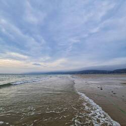 Nach einem ober leckerem Frühstück spazieren wir an Strand um eigentlich ne schöne große Runde zu gehen, doch die Flut macht uns einen Strich durch die Rechnung. Das Wasser steht nun bis auf die Steine rauf und hier können sowohl wir als auch die Hunde nicht vernünftig gehen. Also bleiben wir stehen und lassen die Jungs schön ins Wasser verschwinden mit Hilfe des lieblingsspielzeugs dem Leuchtturm. Danach sind sie fix und alle und wir können den verregneten Vormittag/Mittag entspannt genießen. Lesen und einfach nur die Seele baumeln lassen. Abends ist dann der breite Strand wieder vom Wasser frei gegeben und wir können endlich den geplanten Spaziergang machen. Surfen fällt nämlich leider aus weil schlicht und einfach keine Wellen da sind.