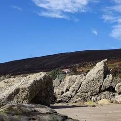 Heute Nachmittag hat es sich wunderschön aufgeklart, sodass wie wieder schön Sonne haben. Jetzt wo die Berge nicht mehr so verhangen sind sehen wir das der obere Teil eines Hügels komplett verbrannt ist. Auch hier hat die Dürre ihre Spuren hinterlassen.