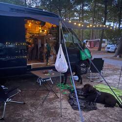 Aber dann ging es los! Endlich Berge und kurven und was zu gucken!!! Die restliche Strecke bis zum Campingplatz verfliegt nahezu und das Fahren macht wieder Spaß 🤩 das "Camping des Dunes" ist etwas versteckt aber wir finden es auf Anhieb. Gott sei Dank spricht hier auch einer deutsch. Der andere nämlich nicht der quatscht uns einfach auf französisch voll und ich versuch fieberhaft meine Erinnerungen aus Schulzeiten von ganz weit hinten hervor zu kramen. Ein bisschen klappt es auch. Wir stehen direkt zwischen den Dünen und sind in 3 min am Strand. Und was für ein Strand das ist ! Die Hunde genießen es und sind Glücklich das sie rennen, toben und buddeln dürfen bis sie nicht mehr können! Und wenn sie glücklich sind, sind wir es auch! Hier bleiben wir 2 Nächte:)Read more