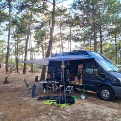Nicht weit hinter der Grenze liegt dann unser 1. Ziel. Wir stehen heute Nacht auf einen Parkplatz direkt am Strand. Man hört das Wellenrauschen und wir machen direkt einen schönen Spaziergang mit Liesel und den Jungs. Leider nicht direkt am Strand sondern einen Wanderweg hinter den Dünen, denn Hunde sind hier am Strand verboten. Wir laufen bis es ruhiger wird und wir einen trampelpfad finden ohne verbotsschild. Dann sehen wir endlich das tolle Felsige Bild der Küste. Traumhaft schön. Wir setzten uns auf einen der warmen Felsen und genießen den Ausblick und die Tatsache, dass wir es auf unserer Reise bereits mit Henry bis nach Portugal geschafft haben!Read more