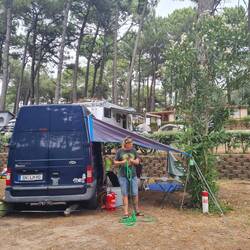 Wir wollen möglichst zeitig am Platz sein um noch einen Stellplatz zu ergattern, denn hier möchten wie unbedingt bleiben. 16.30Uhr stehen wir also schon bereit zum Checkin. Irgendwann kommt ein netter mit Camper vorbei und erklärt mir auf Englisch das man sich seinen Platz einfach aussuchen darf und später dann zum Check in gehen. Na hätten wir das nur vorher gewusst! Ich bedanke mich dass er uns aufgeklärt hat und dann sichern wir uns aber ganze schnell einen der letzten Plätze, denn der Campingplatz ist wirklich nur sehr klein. Aaaaber wenn wir im Bett in Henry liegen können wir das Meer sehen, zu Fuß brauchen wir nichtmal eine Minute bis zum Strand uuund hören tun wir das Meer die ganze Zeit !!! Wirklich ein Traum. Also geh ich kurz nach 5 zur Rezeption. Eine Nette ältere Französin begrüßt mich und bleibt weiter freundlich als ich nach der englischen Sprache frage. Sie sagte ein bisschen kann sie englisch... ich sage ihr das ist gut denn ich Kamm ein wenig französisch also können wir das mischen. Wir lachen beide und klären die Formalitäten. Bezahlen müssen wir erst bei der Abreise. Und morgens kommt sogar ein Bäcker Auto vorbei !
