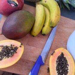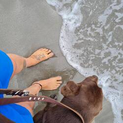 Nachdem wir etwas entspannt haben wird es uns zu warm am Bus und wir packen wieder viel Wasser für die Jungs ein und spazieren zum Strand. Unterwegs holt Susi uns noch leckere Frische Mangos. Am Wasser weht dann ein angenehmes Lüftchen wodurch es sich gut aushalten lässt. Die Jungs genießen ihre Freiheit und toben und rennen und Schwimmen (zumindest Baloo). Zwischendurch machen wir alle gemeinsam Pausen und immer wieder trinken die Jungs ihren Napf leer. Das Salzwasser macht durstig. Und schlägt auch ein wenig auf den Magen in Spencers Fall. Aber da wollen wir mal nicht so sehr ins Detail gehen. Ich sag mal so... seid einfach froh, dass wir euch keine Gerüche rüber schicken können...