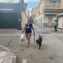Wir wollen auch noch ein wenig die Stadt erkunden, doch da ist jetzt gerade Siesta. Aus diesem Grund geht es Richtung Hauptquartier. Direkt am Wegesrand finden wir ein gemütlich aussehendes Restaurant, wo reges Treiben herrscht. Außerdem sitzen hier auch Menschen mit Hunden, das ist in Spanien bis jetzt nicht möglich gewesen, mit Hund ins Restaurant. Also wird die Chance direkt am Schopf gepackt und schon sitzen wir drin. Das einzige klitzekleine Problemchen an der Sache ist nur, dass es ein Fischrestaurant ist. Für mich kein Problem aber für meine Frau schwierig. Die Karte durchstöbern wir mit Hilfe des Translaters und tatsächlich finden wir für Susi etwas wo nur steht Kattoffeln mit Ei. Wir haben dabei an eine Art Omlett gedacht. Was tatsächlich aber ankommt ist eine große Portion Pommes und ein Spiegelei! Das sieht wirklich witzig aus! Aber stillt auch erstmal den Hunger. Ich habe mich für Tintenfisch entschieden. Super lecker auf Kartoffeln und geil gewürzt. Außerdem gibt es für uns beide Tomatensalat mit reichlich Knoblauch. Also für Susi war das jetzt eher nicht so der Festschmaus aber ich habe es sehr genossen. Zur Belohnung, dass sie das mit mir gemacht hat gibt's heute auf jeden Fall noch Eis! Aber erstmal geht's ins Hauptquartier. In der Stadt ist nämlich gerade Siesta und die machen wir nun auch. Frisch ausgerutscht spazieren wir ca. 1h Später in Richtung Zentrum. An einem kleinen mobilen Naschistand sucht Susi sich leckere Marshmallows und ihre Lieblingskaugummies aus. Die Omi hinterm Tresen versteht man zunächst nicht, da sie uns auf Spanisch was erzählt, doch sie weiß sich zu helfen und malt den Betrag mit ihren Fingern auf den Tresen. Eine 7 und eine 5 also denken wir sie meint 7,50€. Susi kramt also das Geld raus doch die Omi schüttelt nur mit dem Kopf, nimmt sich 1€ weg davon und möchte 25cent Wechselgeld geben. Sie meinte also nur 75cent für susis ganze Naschi. Susi ist ganz überrascht von dem niedrigen Preis und gibt ihr noch 1€ extra. Einfach weil sie so lieb und sympathisch zu uns war. Erst möchte sie es gar nicht annehmen und dann bedankt sie sich mit den Händen auf dem Herzen und bekommt feuchte Augen. Das hat uns selbst etwas ergriffen, und macht uns auch etwas traurig. Das so eine liebe Omi überhaupt dort den ganzen Tag stehen muss und ihre Naschis verkaufen und dann scheinbar so wenig hat, dass ihr ein einzelner Taler von uns so viel Freude bereitet. Die Welt ist ungerecht doch unsere kleinen Gesten können sie jeden Tag ein kleines Stück besser machen. Selbst wenn es nur ein Lächeln ist.