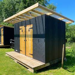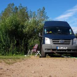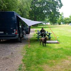 Dieses Mal haben wir für zwei Nächte gebucht und richten uns, nachdem seine Frau uns auf dem Fahrrad zum Stellplatz geführt hat, unser Lager so richtig ein. Es gibt sogar Holzbänke/Tische die man sich ins Lager stellen darf. Die Sanitären Einrichtungen sind sauber und modern und auch hier ist der Platz wieder super Weitläufig so das der nächste Nachbar nicht direkt ins Schlafzimmer gucken kann.