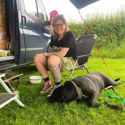 Und wieder begrüßt uns ein nicht so typisch britischer Sonne Wolken Mix am Morgen☀️ der Campingplatz ist absolut still und nachdem wir eine heiße Dusche und unser Frühstück genossen haben (nacheinander, nicht gleichzeitig) checken wir an der Rezeption aus und bezahlen noch unseren Obolus. Sie sagt wir hatten Glück denn am Wochenende ist es hier wohl deutlich voller. Uns war es so ganz recht. Über die kleinen Landstraßen machen wir uns nun weiter Richtung Hafen. Es ist kurvenreich und sehr holprig. Schlaglöcher gibt es hier so viele wie weiße Bohnen zum Frühstück. Henry wird ordentlich durch geschüttelt und so sind wir trotz den wunderschönen Landschafts Panoramas froh, als wir dann doch auf etwas größere Straßen kommen. Es sind nur ca. 130Meilen und ein Zwischenstopp bei Starbucks bis wir an unserem Zieö angekommen sind. Ein kleiner Campingplatz kurz vor dem Ort wo der Fährhafen liegt. Wieder ist er integriert in einen Bauernhof. Auf der Auffahrt stehen Schilder, dass man bitte langsam fahren soll damit Hühner, Pferde, Hunde und Katzen am Leben bleiben. Wir haben vor der Rezeption noch gar nicht ganz eingeparkt da werden wir schon angeschnackt auf welchen Namen wir reserviert haben. Ich erkläre kurz das wir nicht vorher reserviert haben doch das ist gar kein Problem. Er führt ein kurzes Telefonat nur um sicher zu gehen. Dann ist alles klar wir bekommen noch einen Platz. Er erklärt uns verschiedene Wanderwege die wir mit den Hunden gehen können, wie wir auf dem Platz alles finden und das heute Abend im Ort ein Pizza Bus steht wo es frische Steinofen Pizza gibt.