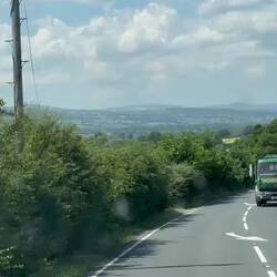 Unser Tagesziel ist es nun, raus aus der Großstadt in ruhigere Gefilde, am liebsten mit einer schönen Dusche. Bei meiner Suche nach geeigneten Campingplätzen, die auch die Bedürfnisse von allen Vier- und Zweibeinern erfüllen, wurde ich schnell fündig. Etwas mehr als eine Stunde Fahrt steht an, heut wollen wir nicht viel Strecke machen. Zunächst geht es wieder durchs Verkehrschaos einer Großstadt, ein Eiscafé wie unterwegs gejagt und dann kommen wir auf immer kleine Straßen. Um uns herum wird es immer grüner. Weitläufige Felder mit Rindern oder Schafen wechseln sich mit kleinen Wäldern ab. Plötzlich die Ankündigung zu einem Grenzübergang. Hoppla jetzt befinden wir uns auf Walisischem Boden. Das war nicht so ganz geplant, macht aber überhaupt nix, denn in Wales waren wir beide noch nicht. Die Route schickt uns weg von den größeren Landstraßen. Jetzt sind es klitzekleine aber geteerte Wege, links und rechts hohe Büsche oder Steinmauern. Auch ein paar Berge fahren wir hinauf und wieder abwärts. Bis sie so schmal werden das wir das Gefühl haben keiner darf uns entgegen kommen. Als dann doch jemand kommt merken wir schnell das es doch passt. Ganz knapp so das nur ein Grashalm zwischen die Spiegel passen würde aber wir kommen aneinander vorbei.