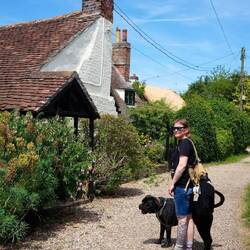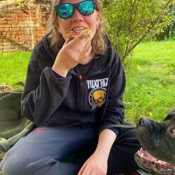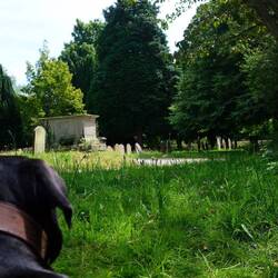Irgendwann raffen wir uns dann auf für einen Spaziergang in die Stadt. Ziel ist der örtliche Supermarkt TESCO. Wir gehen den gleich weg wie gestern und natürlich folgt Liesel uns direkt. Unterwegs treffen wir auf einige Pferde die uns neugierig mustern. Dieses Mal gibt es keine Ablenkungen unterwegs so das Liesel uns bis auf den Kirchplatz auf den Fersen bleibt. Da wir nicht möchten das ihr im Stadttrubel samt Linksverkehr und wirklich sehr zügig fahrenden Engländern was passiert entscheiden wir uns auf zu teilen. Einer bleibt mit den Tieren im Schatten auf der Wiese und einer geht die letzten zwei Minuten zum TESCO alleine. Ich gehe also ohne das Rudel weiter. Der Supermarkt ist schnell gefunden. Beim über die Straße gehen ist Vorsicht geboten, denn rechts kommt es zuerst auf einen zu . Heist wir gucken rechts-links-rechts. Ich komme unbeschadet an. Es ist ein kleiner überschaubarer Markt der aber alles hat was ich suche, sogar ein achter Paket Cola Dosen finde ich für Susi. Auf den Rückweg zum Rudel fällt mir dann ein das ich Brot und Cornflakes vergessen habe. Allerdings ist mein Rucksack auch bis oben hin voll und die zwei Schalen Erdbeeren trage ich schon so. Als ich Susi berichte, wechseln wir uns prompt ab. Ich setzt mich zu den Jungs und Liesel in Schatten und Susi holt, was ich vergessen hab … und noch zusätzliches Naschi weil davon gibt es nie genug!
