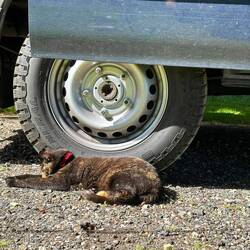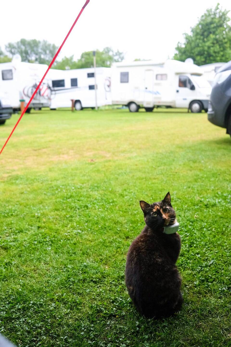 Leute es ist heiß in England! Von wegen immer regen und kalt! Wir wachen bei 27 grad im Schatten auf und stehen aber mit dem Bus in der prallen Sonne. Gestern Abend sind wir zum Übernachten wieder zu dem Parkplatz mit der tollen Aussicht gefahren und nun ist meine erste Amtshandlung umparken! Ein paar Plätze weiter links gibt es große Bäume mit viel Schatten. Das ist deutlich angenehmer! Wir machen erstmal entspannt, Kaffee, frische Brötchen eine Runde Ball spielen mit den Hunden. Dann haben wir noch einen kleinen Zwischenfall mit Liesel, sie ist mit uns und den Hunden mit auf die Wiese gekommen und wurde dort prompt vom ein paar aggressiven Elstern angegriffen. Sie konnte gerade noch so ins nächste Gebüsch fliehen um das herum sich die Vögel jetzt versammelt haben. Alles rufen und suchen hilft Nix. Wir bringen erstmal die Hunde zurück zum Buss denn die sind auch ganz aufgeregt und nicht gerade eine Hilfe bei der Suche. Dann zieh Susi nochmal los, mit Hilfe von Liesels GPS Tracker kann sie den Suchradius beträchtlich eingrenzen. Die arme Liesel ist so verängstigt das sie uns nicht mauzend ruft, so wie sie es sonst tut wenn sie sich alleine nicht weiter traut. Nach langem suchen steht Susi mit einmal genau neben ihr und Liesel schmiegt sich um ihre Beine. Sie hat nur auf Ihre Rettung gewartet!