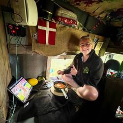 Dabei gab es nur einen kurzen Zwischenstopp. Einen Tag haben wir genutzt zum Wäsche waschen, Zylinder bauen, die Hunde zu den Tanten bringen und Paddy einpacken. Dann ging es los, dieses Mal mit kleinerem Auto. Ab nach Kopenhagen. Mit frischen Kaffee und allerlei Gebäck düsen wir entspannt über die deutsche Autobahn. Wir kommen super durch und stehen promt schon auf Fehmarn in der Schlange zur Fähre. Die Dame am Schalter schmunzelt als sie fragt ob wir auch zum Konzert fahren. Da sind wir wohl nicht die ersten Heute. Überall schon in der Schlange und später auch auf der Fähre Blitzen Rammstein T-Shirts oder Jacken hervor. Die Sonne scheint und wir gönnen uns Kaffee und Eis. 45min später fahren wir schon am Hafen ein. Dunkle Regenwollen begrüßen uns in unserer zweiten Heimat Dänemark. 🇩🇰 Es dauert nicht lange und schon öffnen sich die Schleusen! Bei gemütlichen 100km/h Bummeln wir weiter. Es sind noch ein paar Stunden Zeit wir sind also optimistisch, dass heute Abend dann der Regen fertig ist und der Sonne Platz macht.