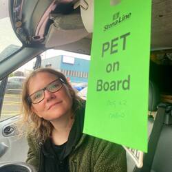 Nachdem die Hunde sich erneut etwas die Beine vertreten konnten geht es auch schon ab aufs Boot. Henry hat extra einen Aufkleber für die Frontscheibe bekommen der drauf hinweist das sie Tiere im Bus befinden. Die dürfen nämlich während der 90minütigen Überfahrt diesen nicht verlassen.