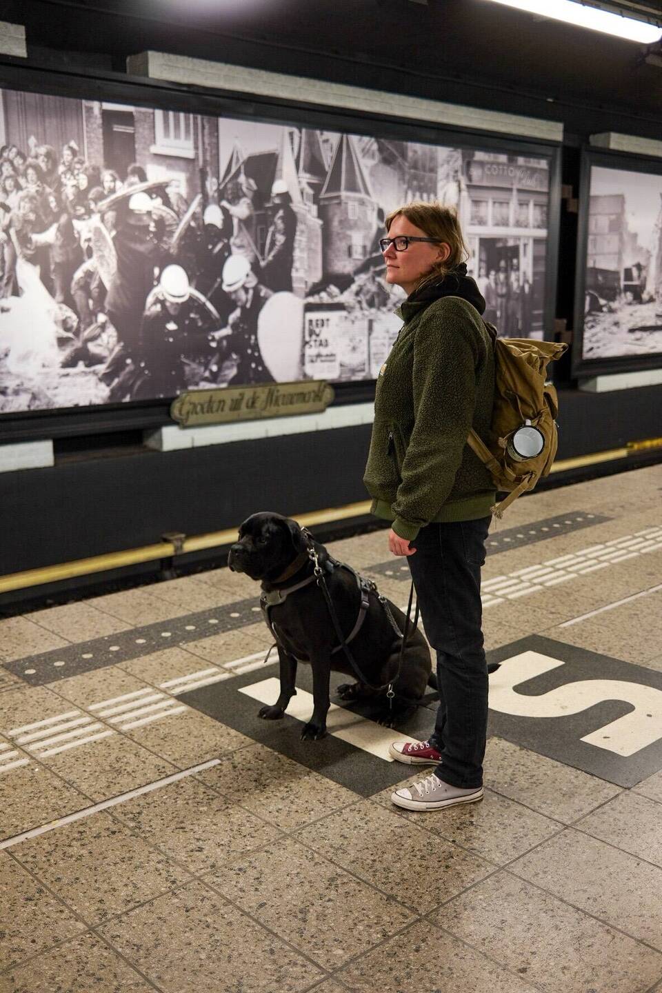 Gut gestärkt machen wir uns dann Spencer und Baloo auf eine Trainingsrunde in die Stadt. Die Metro braucht eine halbe Stunde. Hunde müssen nichts extra bezahlen. Unsere Einstiegsstation ist von dieser Linie die Endstation also erstmal schön leer und wir haben gute Plätze. Die Jungs platzieren sich zwischen unseren Beinen. Dann wird es nach und nach immer voller. Doch selbst Spencer nimmt es erstmal ganz gelassen. In der Stadt angekommen sind wir tatsächlich etwas überrascht wie voll es doch ist, obwohl keine Ferienzeit herrscht. Am Flohmarkt gehen wir deshalb erstmal vorbei. Es sind wirklich viele Menschen und wir merken wie Spencer langsam unruhig wird. Ihm ist das eigentlich zu viel. Also setzten wir uns an den Rand in eine ruhige Ecke bestellen was zu essen und machen uns einen Plan. Es ist bedeckt und windig heute. Wir frieren sogar ein wenig wie wir hier so draußen sitzen. Nach etwa hin und her überlegen entscheiden wir uns dafür, das wir den Bogen nicht überspannen wollen mit den Jungs und es für heute genug Stadttraining war. Sie machen das wirklich gut aber zwischendurch sind es so viele Menschen das selbst Baloo unruhig wird und das heißt schon was. Erstmal können sie noch durchschnaufen während wir unser Mittag verspeisen. Susi hat Spargetti Carbonara und ich leckeren Pannekoeken mit Schinken/Käse. Auf dem Weg zur nächsten Metro Station gibt es noch einen kleinen Schlenker übern Hundeladen. Zwei schöne Kauteile helfen nachher im Bus das erlebte zu verarbeiten und wieder runter zu kommen. In der nun vollen Metro nehmen wir die zwei schützend zwischen uns was sie dankend annehmen und sich direkt hinlegen. Zum Ende wird es dann zum Glück deutlich leerer und entspannter. Mit einer kleinen Rund durch den Park geht es dann wieder zum Camp. So konnten die Jungs mit Schnüffeln und spielen auch ihren Hobbys nochmal nachgehen bevor wir sie in den Bus bringen. Als wir uns sogen sie erneut auf den Weg machen schlafen sie über ihren Kauteilen schon halb ein.