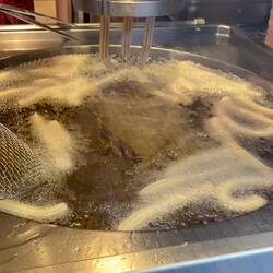Im besten Café der Stadt jagen wir Churros und den traditionellen Geburtstags Erdbeerkuchen. Mit ner dicken Schicht Vanille Pudding zwischen Boden und Früchten, Mega lecker !