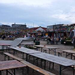 Paddy und ich winken hoch professionell unseren Fahrer ran und der bringt uns in 10 min zum Markt. Der REFFEN ist ein Street Food Markt der mit Hochseecontainern erstellt ist. Hier gibt es wirklich alles. Von Burger über Pommes, süßkaftoffel Pommes, Tacos, Wraps, Gyros, MAC & Chees und vieles vieles Mehr. Wir rechnen heute die dänischen Kronen einfach nicht um und erfreuen uns an dem geilen Scheiß! Die Stimmung ist überall entspannt und fröhlich. Am Wasser sind ein paar Liegestühle aufgestellt und sogar ein kleiner Skatepark ist vorhanden. Ich Ärger mich tierisch das mein Board im Auto liegt und ich es nicht doch den ganzen Tag mitgeschleppt habe. Nun ist es leider nicht zu ändern, doch für das nächste Mal Kopenhagen haben wir definitiv eine Mission!