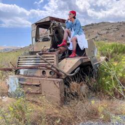 So, für heute hatten wir einen Mietwagen 🚗 gebucht. Unser Ziel - das verlassene Dorf Kalami im Süden von Kreta. Das gebuchte „alte“ Auto entpuppte sich tatsächlich als ein schon in die Jahre gekommener Matiz. 😳 52 PS Bums 💪🏻 unter der Haube und 163000 auf dem Buckel. Aber immerhin mit Klimaanlage und in der Farbe der Saison - orange. Aber hey, das Möhrchen war dafür unschlagbar günstig. Man übergab uns die Schlüssel und los ging‘s. Wir folgten den Anweisungen des Navi und tuckerten einmal längs über die Insel. Durch karge Vegetation und vorbei an Wäldern voller Olivenbäume. Auch den viel angepriesenen Aquapark konnten wir mitten im Nirgendwo erspähen. Übrigens, die Top Adresse für Golfspieler. Den ausgeschilderten Streichelzoo konnten wir allerdings nicht erblicken. Wie beschrieb es Jessi so schön: läuft bei uns wie geschnitten Brot. 😂 Kurz vorm Erreichen des Geisterdorfes wollten wir noch schnell tanken. Also ab zur nächsten Tanke, wo auch gleich ein freundlicher Tankwart zu uns sprang. ⛽️Nur noch das kleine Hebelchen ziehen, damit die Tankdeckelklappe aufspringt. NICHTS! Hmm, nochmal, wieder NICHTS! Gleiches Spiel mehrfach wiederholt. Das Möhrchen wollte einfach nicht. Der Tankwart probiert mit einer Münze, den Deckel zu öffnen - NICHTS! Aber die Jessi wär nicht die Jessi, wenn sie nicht die Jessi wär. 😉 Mit magischen Händen schafft sie es, den Tankdeckelklappe zu öffnen! Yeah, selbst ist die Frau! Entspannt und betankt setzen wir unsere Fahrt fort. Nach wenigen Minuten sehen wir das Dorf Kalami ,staunen und freuen uns. Denn wir haben ja was besonderes vor. Nicht nur Steine gucken ist angesagt, nein, wir wollen ja Fotos machen - mit uns - im Lostplace - mit extra aus Deutschland mitgeschleiften Outfits. Schnell das Auto geparkt, die Sachen gepackt und losgestiefelt. Leise und vorsichtig bewegen wir uns durch die Gässchen bis wir weiter hinten ein paar ältere Frauen sitzen sehen. Diese gehören wohl zu den wenigen letzten Bewohnern des Geisterdorfes. So beschlossen wir nicht weiter zu gehen und mit Abstand in einem netten Häuschen, welches eine schöne Location für unsere Fotos bot, zu bleiben. Schnell noch geschminkt (voll sinnvoll bei der Hitze) und in die Outfits gesprungen. Naja, schnell ist jetzt bissle übertrieben 😜. Und los ging das Shooting. Gefühlt waren wir völlig allein hier und haben MEGA Fotos gemacht. Leider blieb das nicht so. Nach und nach kamen weitere Lostplacetouristen. Deutsche, Schweden, Asiaten. Wir vermuten, das wurde den Bewohnern dann doch zuviel. Plötzlich stand eine ältere Bewohnerin vor dem Haus und schrie uns an, wir sollten verschwinden - NOW! NO HOME (sollte sicher go home bedeuten). 😤 Also schnappten wir unsere 7 Sachen und gingen im Volloutfit zurück zum Auto. Wir wollten ja keinen Stress! Außerdem hatten wir unsere Bilder im Kasten. Wir beschlossen auch in unseren Outfits zurückzufahren. Jessi hatte auf der Fahrt hierher eine alte Baumaschine gesehen, die für weitere Fotos prädestiniert war. Und ganz ehrlich, einmal die Klamotten ausgezogen, wären wir nie wieder in diese reingekommen. 🤭 Wir haben nur gehofft, dass wir in keine Polizeikontrolle kommen. Das hätten wir nicht schön reden können. Die Baumaschine war ein Traum. Es entstanden Fotos, die könnten direkt für einen Kalender verwendet werden! Weitere Fotos folgten: im Olivenhain oder auf einem Felsplateau. Der vermeintliche Lost-Flieger entpuppte sich leider als aktive Militärbasis. 😩 Nee, das war uns zu heiß! So traten wir die Rückfahrt an. Leider im strömenden Regen (so hatte es die Wetterapp auch vorher gesagt). Noch ein kurzer Stop in einer Taverne um unsere Bäuche zu füllen. Zurück im Hotel blätterten wir in unseren Fotos. Das haben wir, glaube ich, gut hinbekommen. Nachdem wir unser Möhrchen zurückgegeben haben, haben wir den Abend wieder im Pub mit Quiz und Bingo bei leckeren Cocktails ausklingen lassen. Und hey, wir werden im Quiz immer besser. Sind bereits bei 13 richtigen Antworten (von 20).Read more