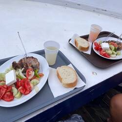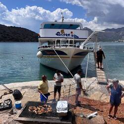 Für den heutigen Tag hatten wir einen Ausflug nach Spinalonga gebucht. Auch hier waren wir sehr froh darüber , dass uns der freundliche Mann vom Reisebüro die Lage der Bushaltestelle , von der wir abgeholt werden sollten, auf der Rückseite des Vouchers aufgezeichnet hat. Hätte echt in die Hose gehen können, weil Schwierigkeitslevel 2! Achtung, jetzt kommt’s, die Haltestelle lag direkt vor unserem Hoteleingang! Der Bus kam pünktlich und dieses Mal reisten wir auch nicht incognito, sondern mit unseren richtigen Namen. Im Bus saßen wieder viele illustre Mitreisende. Leider gab es nur nich Plätze ganz hinten. Der Mitreisende vor Jessi hatte es sich mit zurückgestelllter Rückenlehne SEHR bequem gemacht, und lag demzufolge fast auf Jessis Schoß 🤦🏻♀️. Zum Glück dauerte die Fahrt nur 45 min. An Bord eine nette Reiseleiterin - Irini, die fließend auf englisch, französisch und italienisch kommunizierte. Für die deutschsprachigen Mitreisenden gab‘s einen extra Reiseleiter. Den Namen haben wir uns nicht merken können. Irgendwas mit Eu… 🤷🏻♀️. Immerhin sprach er besseres Deutsch als Anna. Blöd nur, dass er übers Mikro zu leise sprach. Aber Dank Jessis perfekter Englischkenntnisse 🙏🏻 kamen alle Infos bei uns an. In Eluonda bestiegen wir unser Boot, welches uns zur Insel Spinalonga brachte. Spinalonga war eine ehemalige Leprakolonie und ist heute Weltkulturerbe. Wen es interessiert, hier könnt ihr gern nachlesen. https://de.m.wikipedia.org/wiki/Spinalonga Wir hatten etwa 1 h Zeit, die Anlage auf Spinalonga zu erkunden., was wir dann bei gefühlt 45 Grad auch taten. Mutig verließen wir den ausgeschriebene Rundweg und kletterten über Steine bis ganz nach oben auf ein Plateau. Von dort hatten wir einen mega Ausblick über die Insel, aufs Festland und die Anlage. Viele Fotos! „wundersssön!“ 😉 Zum Abschluß gab’s noch eine kleine Führung mit unserem Reiseleiter, dessen Namen wir uns nicht merken konnten. 🤪Ach ja, zwei Geocaches haben wir dort auch gesucht. Zurück auf dem Boot ging es zu einer kleinen Bucht, wo man baden durfte und wo es noch BBQ gab. Wir setzten uns auf einen kleinen Felsen, ließen die Füße im Wasser baumeln und betrieben wieder Feldstudien. Alter Falter! Kennt ihr nich die „ Dicken Kinder von Landau“? Hier waren ganze Familien aus Landau!!! 😳 Und jene sprangen frisch fröhlich vom Boot ins Wasser. Wir sahen mal wieder Dinge, die wir eigentlich nicht sehen wollten. 🙈 Das BBQ war lecker, es gab Schweinenacken, Salat, Feta und Brot. Aber die Grillvorrichtung hätte die Prüfung weder beim TÜV noch beim WKD bestanden. Nach der Rückkehr nach Eluonda ging es mit dem Bus weiter in die Hafenstadt Agio Nikolaos. - das Saint Tropez von Kreta (so heißt es). Wir kapselten uns von der Gruppe ab und machten unser eigenes Ding. Wir suchten 3 Geocaches und genehmigten uns ein lecker Eis, bevor es auch schon wieder zurück zum Bus ging und wir die Rückfahrt antraten. Im Hotel entspannten wir uns kurz mit den 3 einzigen deutschen Fernsehsendern die es gab. Ich glaube „Doppelt kochen, hält besser“ hieß die Sendung. Nach dem Abendessen ging’s wieder in‘s Städtle, wo wir den Abend fast schon traditionell bei Pubquiz und Bingo haben ausklingen lassen.