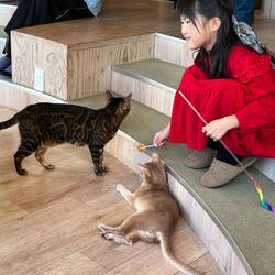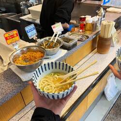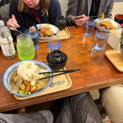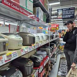 Today we went to Nakano, visted anime merch stores and ate udon, went to a cat cafe and finishing off buying a rice cooker… now how do I get it home..?