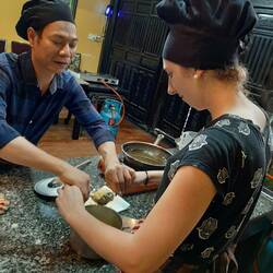 SOLO TRAVELS 2019TravelerShow tripAdd to bucket listRemove from bucket listShareDay 6Wednesday, October 30, 2019 at 1:00 PM 🌧 23 °C Altitude: 7 m VietnamHoi An15.87851, 108.3389915°52’43” N 108°20’20” ECooking class in Hoi An with Hi October 30, 2019 in Vietnam ⋅ 🌧 23 °C Cooking with Chef Hi at the Green Mango Restaurant 1 like Show trip