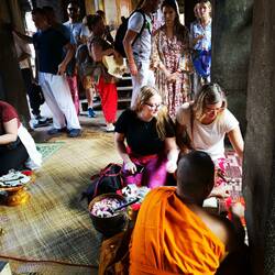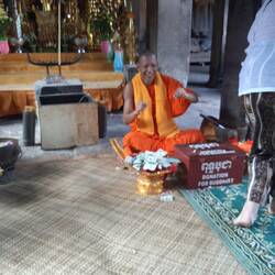 SOLO TRAVELS 2019TravelerShow tripAdd to bucket listRemove from bucket listShareDay 21Thursday, November 14, 2019 at 9:00 AM ⛅ 27 °C Altitude: 25 m CambodiaPhumĭ Trâpeăng Séh Khang Lĕch13.41171, 103.8639313°24’42” N 103°51’50” EMonk Blessing in Ankor Wat November 14, 2019 in Cambodia ⋅ ⛅ 27 °C 0 likes Show trip