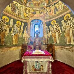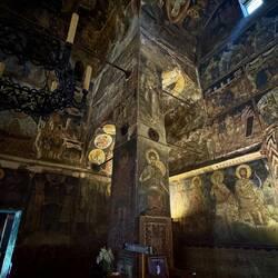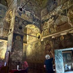 Wir haben auf einer schönen Terrasse zu Mittag gegessen. Leider wurde nicht das bestellte lokale Essen sondern Lammkotelett geliefert. Es hat Gabi nicht besonders geschmeckt. Dafür war der Nachtisch super! Beide Kirchen waren leider von Aussen vollständig eingerüstet. Von innen jedoch wunderbar!もっと詳しく