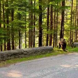 Wir fahren den Abschnitt zwischen Vidaru Stausee und unserem Campingplatz für die Nacht. Zahlreiche Bären tauchen am Strassenrand auf. Bei der ersten Sichtung ist der Bär so nah, das Gabi das iPhone vor Schreck fallen lässt, als ich ihr das Fenster zum fotografieren öffnete. 🤪