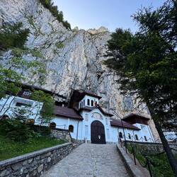 Eigentlich wollten wir Schloss Peleș als nächstes Besuchen. Da es aber erst am Mittwoch wieder geöffnet hat und wir noch 1,5 Tage Zeit haben beschließen wir doch noch den Bucegi National Park zu besuchen. Ein Ziel auf der Bucket List ist die Ialomiței Höhle auf einer Höhe von 1530 m. Es geht wieder einmal eine enge, teilweise holprige Straße endlose Serpentinen hinauf. Wir wollen auf dem Parkplatz an der Höhle übernachten. Kaum angekommen laufen wir noch schnell los. Das Ialomiței Kloster, das am Eingang der Höhle liegt ist schon geschlossen, aber es ist ein sehr schöner Weg und wir können noch nette Fotos machen.