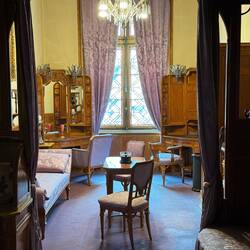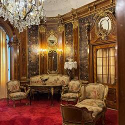 Es ist mit 2 Aufzügen und einer zentralen Staubsaugeranlage mit 4 Ausgängen ausgestattet. Von Beginn an hatte es fließendes Warmwasser, Telefonanschluss und elektrische Beleuchtung. Das über 3.200 Quadratmeter große Schloss verfügt über 160 Zimmer.