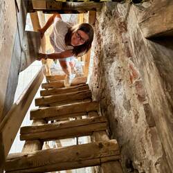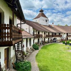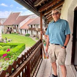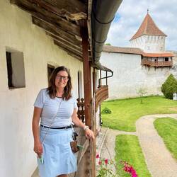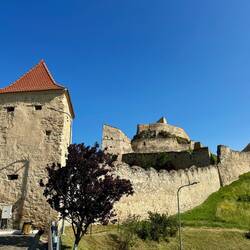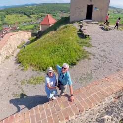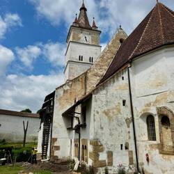 Bei bestem Wetter besichtigen wir die Wehrkirche Honigberg aus dem 13. (!) Jahrhundert. Mica darf mit rein, allerdings kann er nicht die vielen teils wackeligen Treppen klettern. In Deutschland wäre vermutlich alles abgesperrt worden . Auch dadurch hat die Besichtigung sehr viel Spass gemacht, auch wenn es für Gabi manchmal schlimm war. Mica hatte draussen keinen Spass, da besonders vor der schwarzen Katze gewarnt wurde.