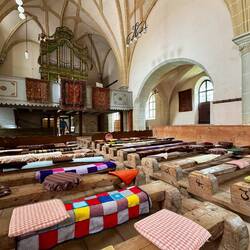 Die verschiedenen Decken in der Kirche erinnern Gabi an Badehandtücher die zum Platz reservieren am Strand abgelegt werden. 🤪