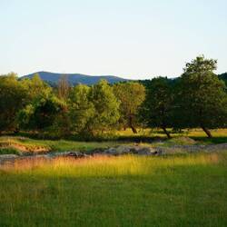 Die schöne Aussicht auf die Hügelige Landschaft beeindruckt. Nach dem starken Regen am Tage ist das Wetter AbendsLæs mere
