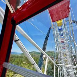 Übernachtung in einem etwas heruntergekommenen ehemaligen Parkgelände. Die Natur erobert das Gelände zurück. In Sichtweite verlassene Häuser und ein Riesenrad 🎡 das aber noch in BetriebLæs mere