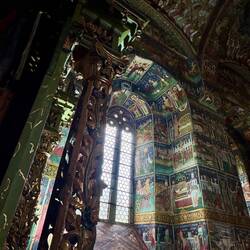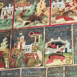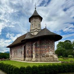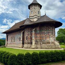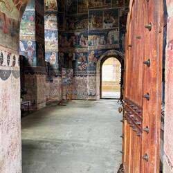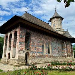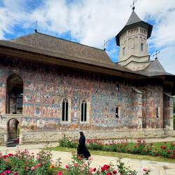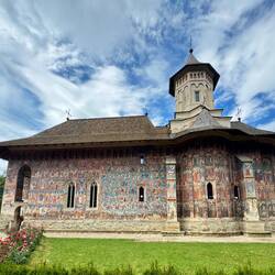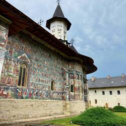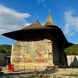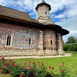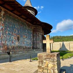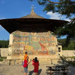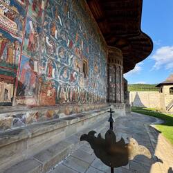 Wir besuchen Kloster Voroneț, mit Fresken aus dem 15. Jahrhundert. Leider sind auf der Wetterseite nicht mehr viele Fresken zu sehen. Aber wir gehen um das Kloster herum und sehen die gut erhaltenenLæs mere