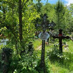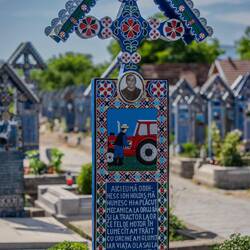 Wir sind an einem ganz besonderen Friedhof! Erst einmal sind alle Kreuze blau und mit bunten Bildern. Auf den Kreuzen ist der Verstorbene dargestellt, mit seinem Beruf, seinem Hobby, was ihn soもっと詳しく