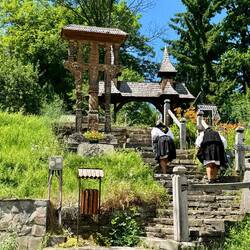 Wir sind immer noch in Maramuresch. Die Landschaft hat sich kaum verändert, die Häuser, der Brauchtum und vor allem die Kirchen aber sehr. Plötzlich haben die Höfe riesige geschnitzteもっと詳しく