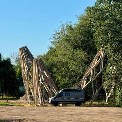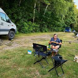 Nach der langen Fahrt mit der Dampflok und Besichtigung einer Holzkirche sind wir echt platt für heute. Gabi hat diesen schönen Stellplatz ausgesucht.