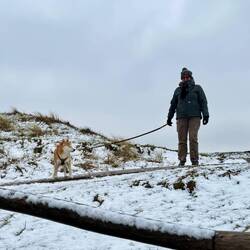 Heute Morgen unternehmen wir bei dichtem Schneegestöber einen Spaziergang durch das nahegelegene Landschaftsschutzgebiet. Mica macht es sichtlich Spaß durch das schöne Gebiet zu laufen.