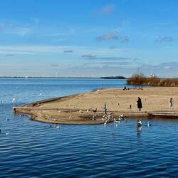 Von Alkmaar fahren wir über den Abschlussdamm quer durch das IJsselmeer nach Woudsend. Hier werden wir für drei Tage auf dem Campingplatz am Jachthafen stehen.