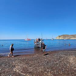 Visite d'Akrotiri avec sa plage de sable rouge. Akrotiri est le village le plus au sud de l'île. Bus de Megalochori (environs 20 min). Débarquons près d'un site archéologique. Marche de 20 min.Read more