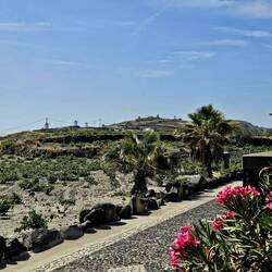 Arrivés à Santorini en speed boat de l'île de Paros. Nous logeons dans le village de Megalochori à la villa Orpheus. Petit village traditionnel avec ses petites églises.