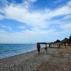 Nous marchons jusqu'à la plage de Perissa (1h30). Puis flanons sur la plage. Journée relaxe avant de quitter l'île demain.