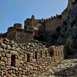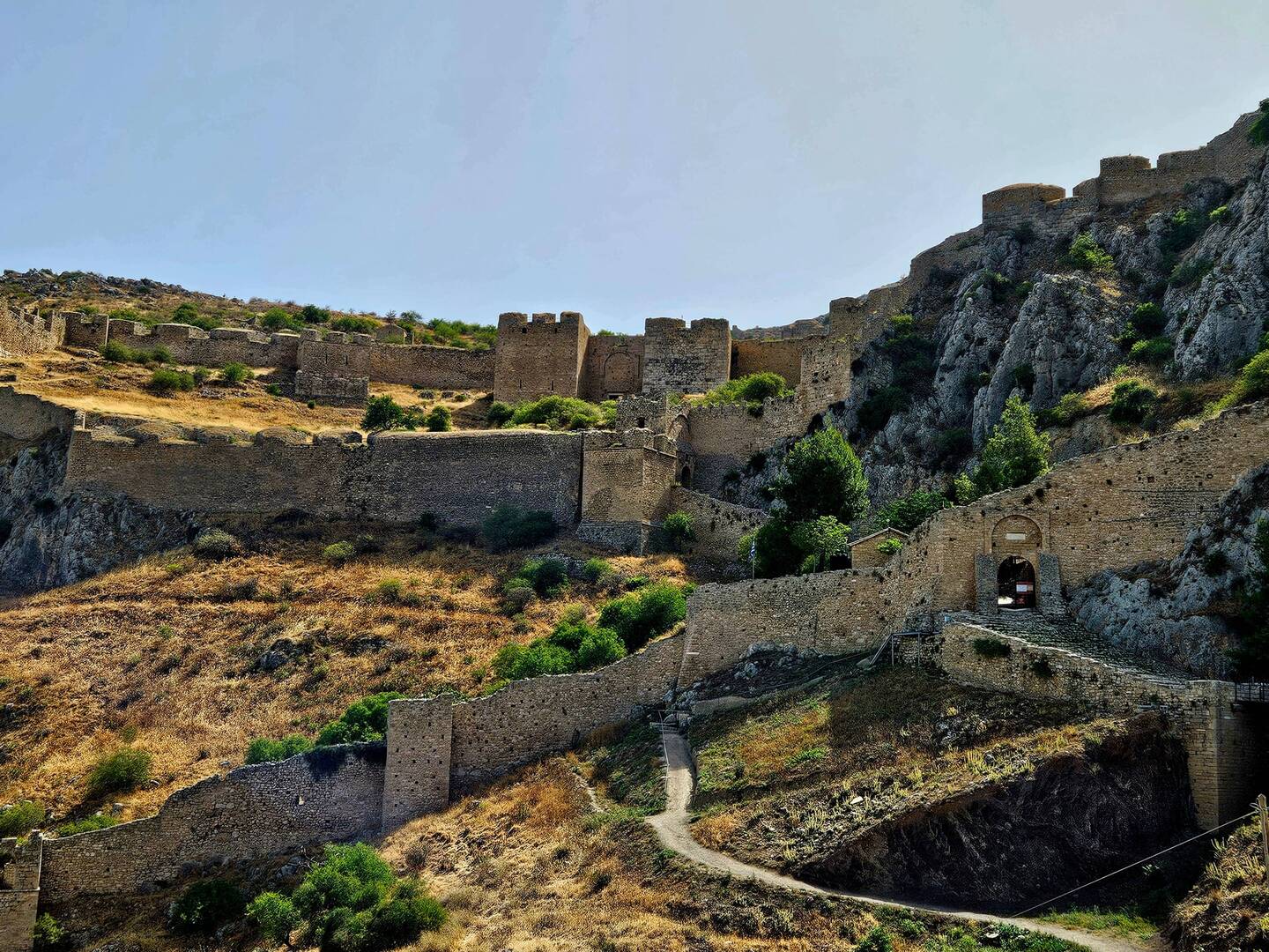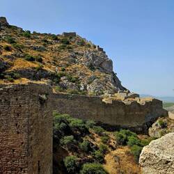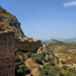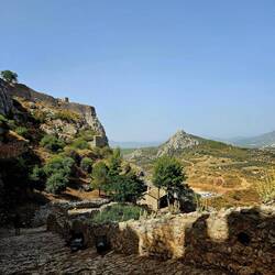 L'Acrocorinthe est la Citadelle de l'antique Corinthe. C'est l'énorme rocher avec forteresse au dessus de l'ancienne Corinthe.