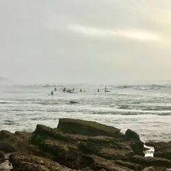 Then we walked down to the beach and climbed across the rocks to watch the surfers before finally coming back to Wanda and put on Dexter on DVD while we had the power to do so.