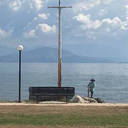 Cross Corfu west coast to east coast was the days plan the question to hike or bus 🚌. Being a hiking holiday on with the shoes and up with the pack. The route was suggested by a local who unfortunately thought we would get lost on the scenic walk so it was via main road that we headed to Petriti. A small fishing village on the east coast. Maybe we started a bit late but that would only be known coming home. Directions were simple walk and turn left At mama’s tavern. Once off the main road the the route down the mountain bro Petriti was filled with views across the valley. The usual homes verandas on the road were filled with people and Kalimare was my usual greeting to waves and smiles. A local farmer took some photos of us that he switched to a 1