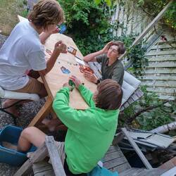 Elijah and Benjamin had to do some home schooling today to pass their wind surf exam level 1.