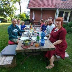 Werner and Brigitte celebrate their 80th birthday together with BBQ in the garden, lots of cakes and many visitors joining the fun in the garden.