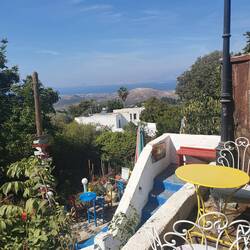 Drinks im alternativen Hippie Café am Pyli Castle 3/5☆