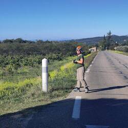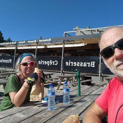 Wir sind nur 6km weiter gefahren nach Mormoiron. Jetzt sitzen wir im Restaurant und warten aufs Essen. Roland schaut böse, weil es als Vegetarier immer noch schwierig ist....