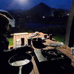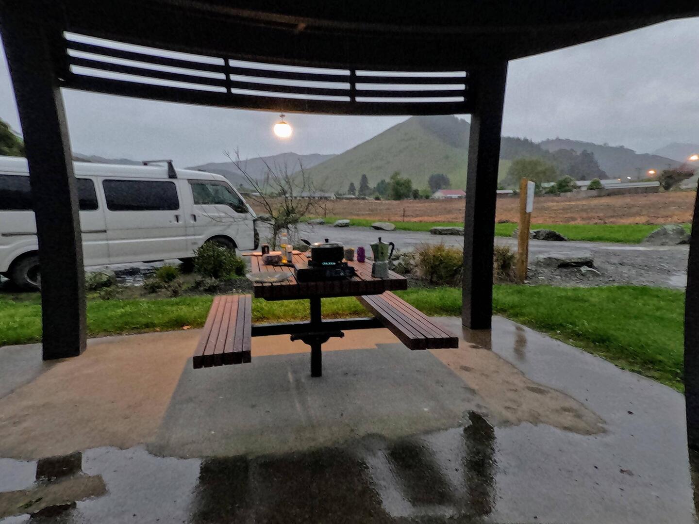 On a passé la nuit dans un camp sur la route. Il a plu mais on avait un abri