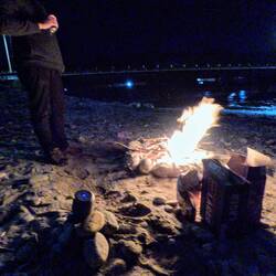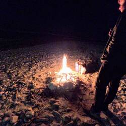 Nuit à la plage avec un feu